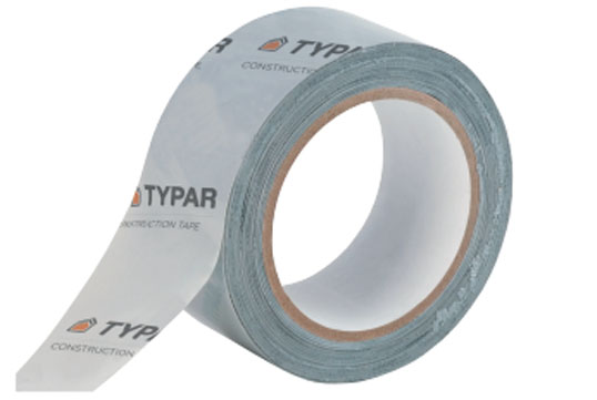 TYPAR Construction Tape is a polypropylene sheathing tape coated with an aggressive acrylic pressure sensitive adhesive (PSA) designed for use as a closure sytsem and vapor seal on all exterior sheathing materials.