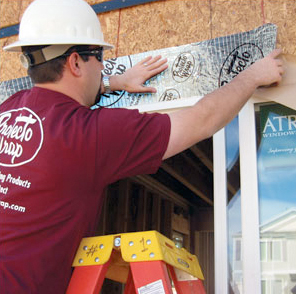 High-Performance Window and Door Flashing Tape. A high tack, tenacious, durable, peel and stick air/vapor barrier tape system used for sealing PVC and aluminum fin windows and doors; window and door openings; and as a full coverage air vapor barrier membrane. It is a high performance window and door flashing tape designed to be applied down to -20°F (-28.88°C) without the use of primer or mechanical fasteners on most substrates. (Substrates must be tested for adhesion.*) It utilizes a high tack pressure sensitive adhesive (PSA) combined with a high performance facer film. This design provides a full 12 month UV exposure. A greener, cleaner building tape solution that offers No VOC’s, HFCC’s, nor CFC’s. It is non-toxic and non-allergenic. No off-gassing is produced during the manufacture nor installation of this product.